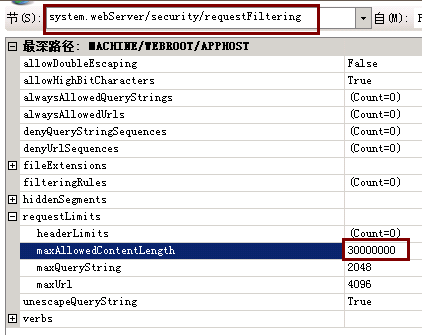 修改maxAllowedContentLength